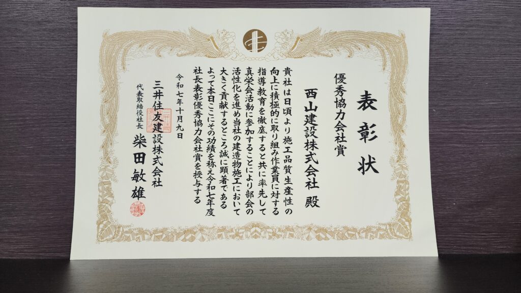 三井住友建設株式会社 真栄会社長表彰 【優秀協力会社賞】受賞